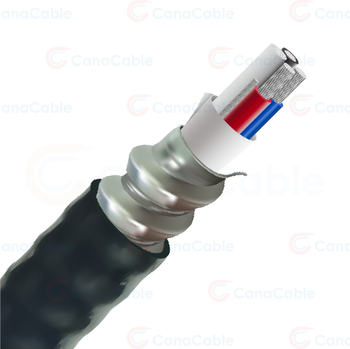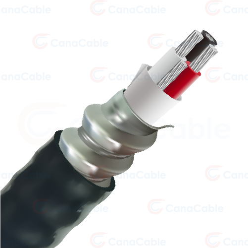 Interlocked aluminum armor, 600V, 90°C XLPE insulation.